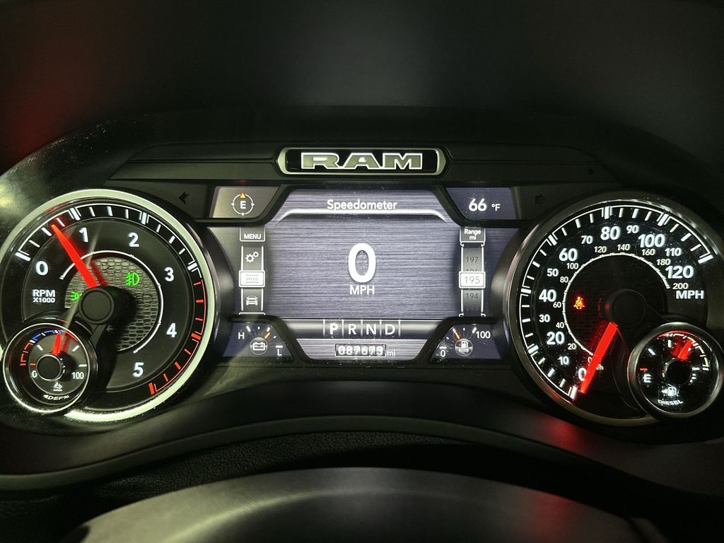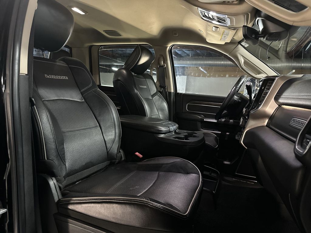 l Disc Brakes, 5-Year SiriusXM Traffic Service, 5-Year SiriusXM Travel Link Service, 5th Wheel/Gooseneck Towing Prep Group, ABS brakes, Active Noise Control System, Adaptive Cruise Control w/Stop, Adjustable pedals, Air Conditioning, Alloy wheels, AM/FM radio: SiriusXM, Apple CarPlay, Apple CarPlay/Android Auto, Auto High Beam Headlamp Control, Auto-dimming Rear-View mirror, Automatic temperature control, Blind Spot & Cross Path Detection, Brake assist, Bumpers: chrome, Center Hub, Compass, CTR Stop Lamp w/Cargo View Camera, Delay-off headlights, Disassociated Touchscreen Display, Driver door bin, Driver vanity mirror, Dual front impact airbags, Dual front side impact airbags, Electronic Stability Control, Electronically Controlled Throttle, Exterior Mirrors w/Memory, Foam Bottle Insert (Door Trim Panel), Folding Flat Load Floor Storage, For Details Visit DriveUconnect.com, Front anti-roll bar, Front Bumper Sight Shields, Front Center Armrest w/Storage, Front dual zone A/C, Front fog lights, Front reading lights, Front Seat Back Map Pockets, Full Speed Forward Collision Warning Plus, Fully automatic headlights, Garage door transmitter, Google Android Auto, GPS Antenna Input, GPS Navigation, HD Radio, Heated door mirrors, Heated Front Seats, Heated front seats, Heated Second Row Seats, Heated Steering Wheel, Heated steering wheel, High Back Seats, Illuminated entry, Integrated Voice Command w/Bluetooth, Laramie Level 2 Equipment Group, Leather steering wheel, Leather Trim 40/20/40 Bench Seat, LED Bed Lighting, Low tire pressure warning, Manufacturer's Statement of Origin, Media Hub w/2 Charge Only USBs, Mirror-Mounted Aux Reverse Lamps, Occupant sensing airbag, Outside temperature display, Overhead airbag, Overhead console, Panic alarm, ParkView Rear Back-Up Camera, Passenger door bin, Passenger vanity mirror, Power 8-Way Adjustable Passenger Seat, Power Adjust 8-Way Driver Seat, Power Adjustable Convex Aux Mirrors, Power Adjustable Pedals w/Memory, Power Chrome Tow Mirrors w/Convex Spotter & Memory, Power Deployable Running Boards, Power door mirrors, Power driver seat, Power passenger seat, Power steering, Power windows, Protection Group, Quick Order Package 2HH Laramie, Radio data system, Radio: Uconnect 4 w/8.4" Display, Radio: Uconnect 4C Nav w/8.4" Display, Radio/Driver Seat/Mirrors/Pedals Memory, Rain Sensitive Windshield Wipers, Ramcharger Wireless Charging Pad, Rear 60/40 Folding Seat, Rear reading lights, Rear seat center armrest, Rear step bumper, Rear Wheelhouse Liners, Rear window defroster, Remote keyless entry, Remote Tailgate Release, Safety Group, Security system, Selectable Tire Fill Alert (DISC), Single Disc Remote CD Player, SiriusXM Satellite Radio, SiriusXM Traffic Plus, SiriusXM Travel Link, Speed control, Split folding rear seat, Steering wheel mounted audio controls, Surround View Camera System, Tachometer, Tilt steering wheel, Tip Start, Towing Technology Group, Traction control, Trailer Reverse Guidance, Trip computer, Turn signal indicator mirrors, USB Host Flip, Variably intermittent wipers, Ventilated Front Seats, Voltmeter, Wheels: 18" x 8.0" Polished Aluminum.