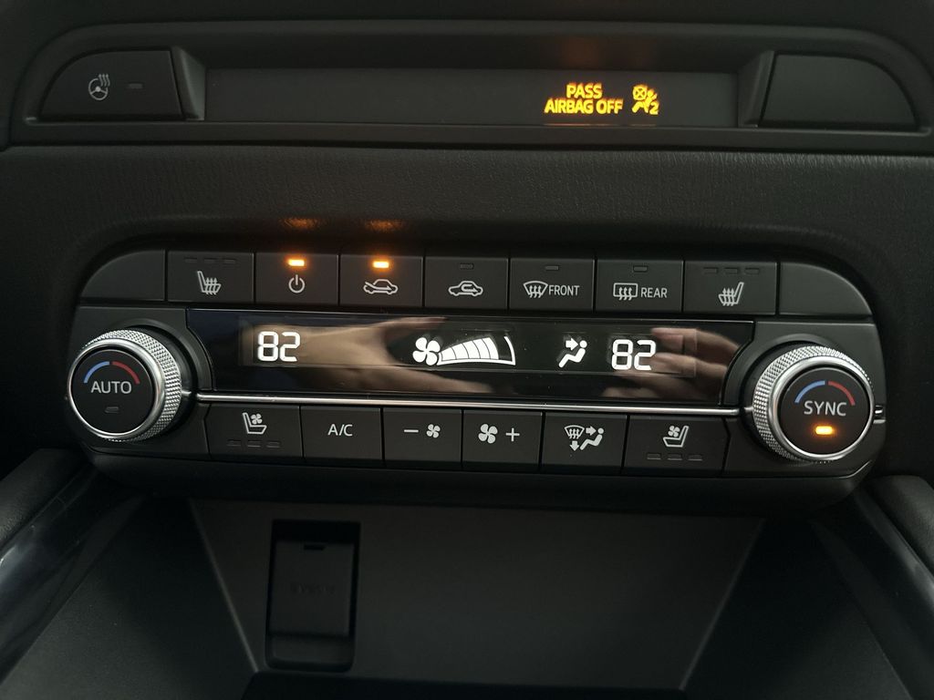 perature control, Brake assist, Bumpers: body-color, Cargo Tray, Delay-off headlights, Driver door bin, Driver vanity mirror, Dual front impact airbags, Dual front side impact airbags, E911 Automatic Emergency Notification, Electronic Stability Control, Emergency communication system: MAZDA CONNECT, First Aid Kit, Four wheel independent suspension, Front anti-roll bar, Front Bucket Seats, Front Center Armrest w/Storage, Front dual zone A/C, Front reading lights, Fully automatic headlights, Garage door transmitter: HomeLink, Heads-Up Display, Heated door mirrors, Heated front seats, Heated rear seats, Heated steering wheel, Heated/Ventilated Front Bucket Seats, Illuminated entry, Infotainment System Voice Command, Leather Seat Trim, Leather Shift Knob, Leather steering wheel, Low tire pressure warning, Memory seat, Multifunction Commander Control, Occupant sensing airbag, Outside temperature display, Overhead airbag, Overhead console, Pandora, Panic alarm, Passenger door bin, Passenger vanity mirror, Power door mirrors, Power driver seat, Power Liftgate, Power moonroof, Power passenger seat, Power steering, Power windows, Radio Broadcast Data System Program Information, Radio data system, Radio: AM/FM/HD Audio System, Rain sensing wipers, Rear anti-roll bar, Rear reading lights, Rear seat center armrest, Rear window defroster, Rear window wiper, Remote keyless entry, Retractable Cargo Cover, SMS Text Msg Audio Delivery & Reply, Soul Red Crystal Metallic Paint, Speed control, Speed-sensing steering, Split folding rear seat, Spoiler, Steering wheel mounted audio controls, Tachometer, Telescoping steering wheel, Tilt steering wheel, Traction control, Trip computer, Turn signal indicator mirrors, Variably intermittent wipers, Ventilated front seats, Wheels: 19" x 7J Aluminum Alloy.