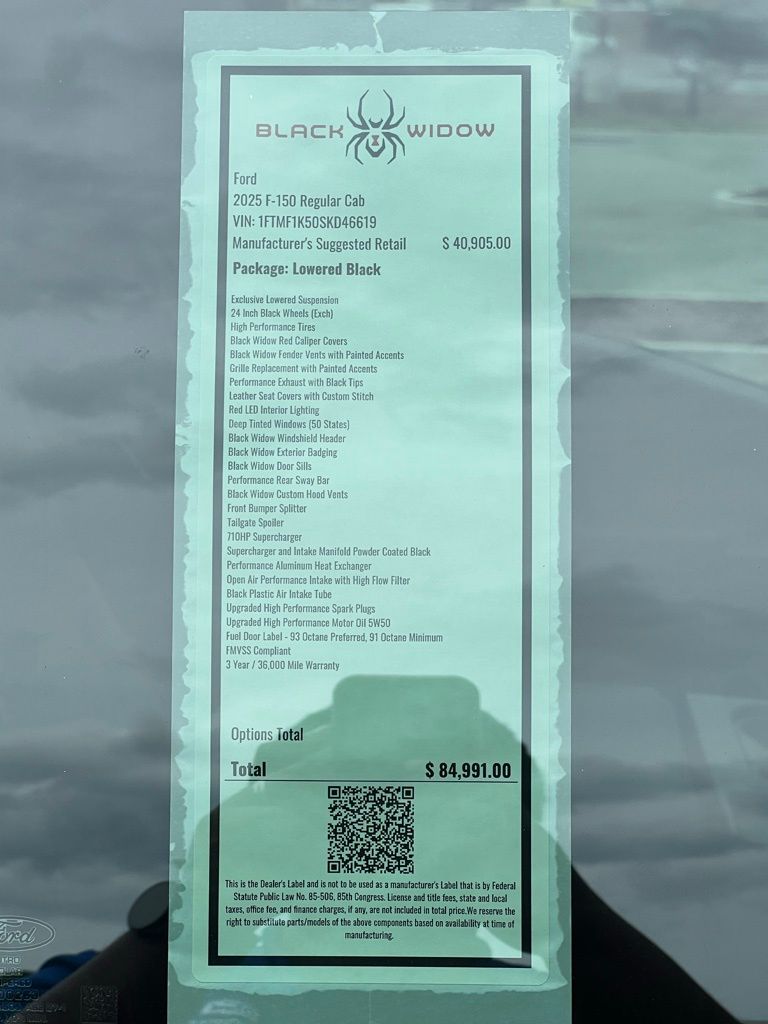 ELY DETAILED*, *BLUETOOTH, Hands-Free*, *PORTABLE AUDIO CONNECTION*, F-150 XL Black Widow Supercharged, 2D Standard Cab, 5.0L V8, 10-Speed Automatic, RWD, Agate Black Metallic, Black W/Medium Dark Slate Leather, 4 Speakers, Equipment Group 101A Standard, Front License Plate Bracket, GVWR: 6,250 lbs Payload Package, Heated door mirrors, Low tire pressure warning, Outside temperature display, Power door mirrors, Radio data system, Rear step bumper, SYNC 4 w/Enhanced Voice Recognition.